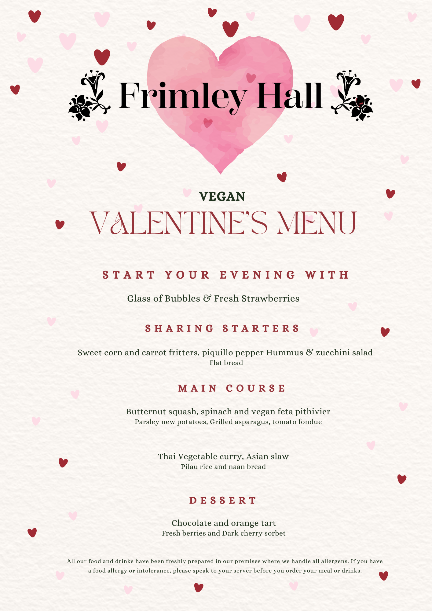 Join us in The Linden Restaurant at Frimley Hall Hotel with friends and family for our delicious Sunday Lunch experience. Open to both hotel guests and non-residents, enjoy a contemporary menu including vegetarian and vegan options.