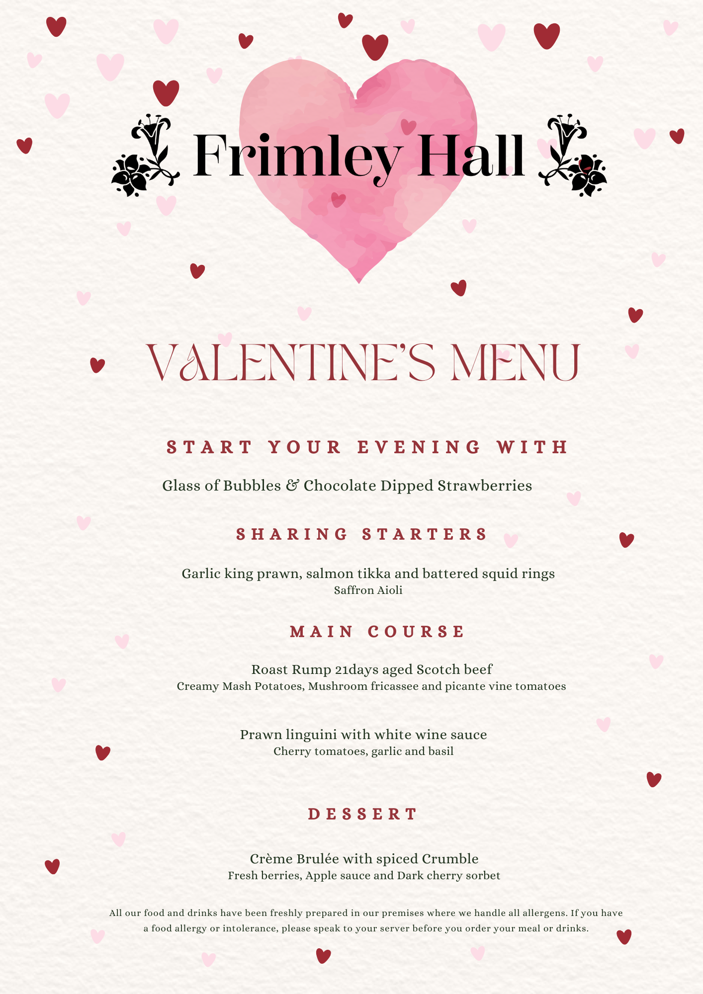 Join us in The Linden Restaurant at Frimley Hall Hotel for a romantic meal in elegant surroundings. You'll enjoy an unforgettable evening filled with love, delicious food, and great company.