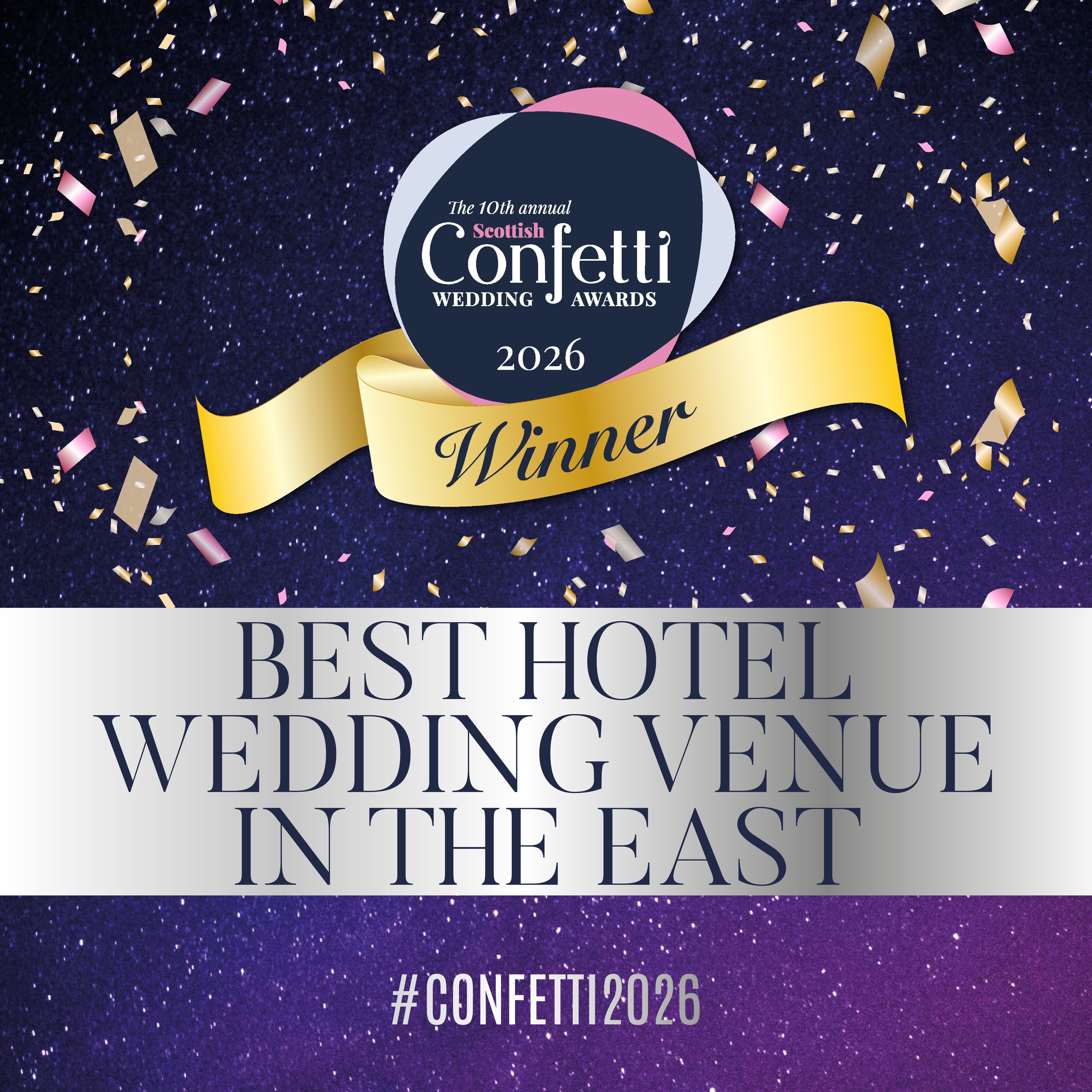 We're thrilled to be awarded the best hotel venue in the East 2026! Thank you to all of our previous couples for your support.